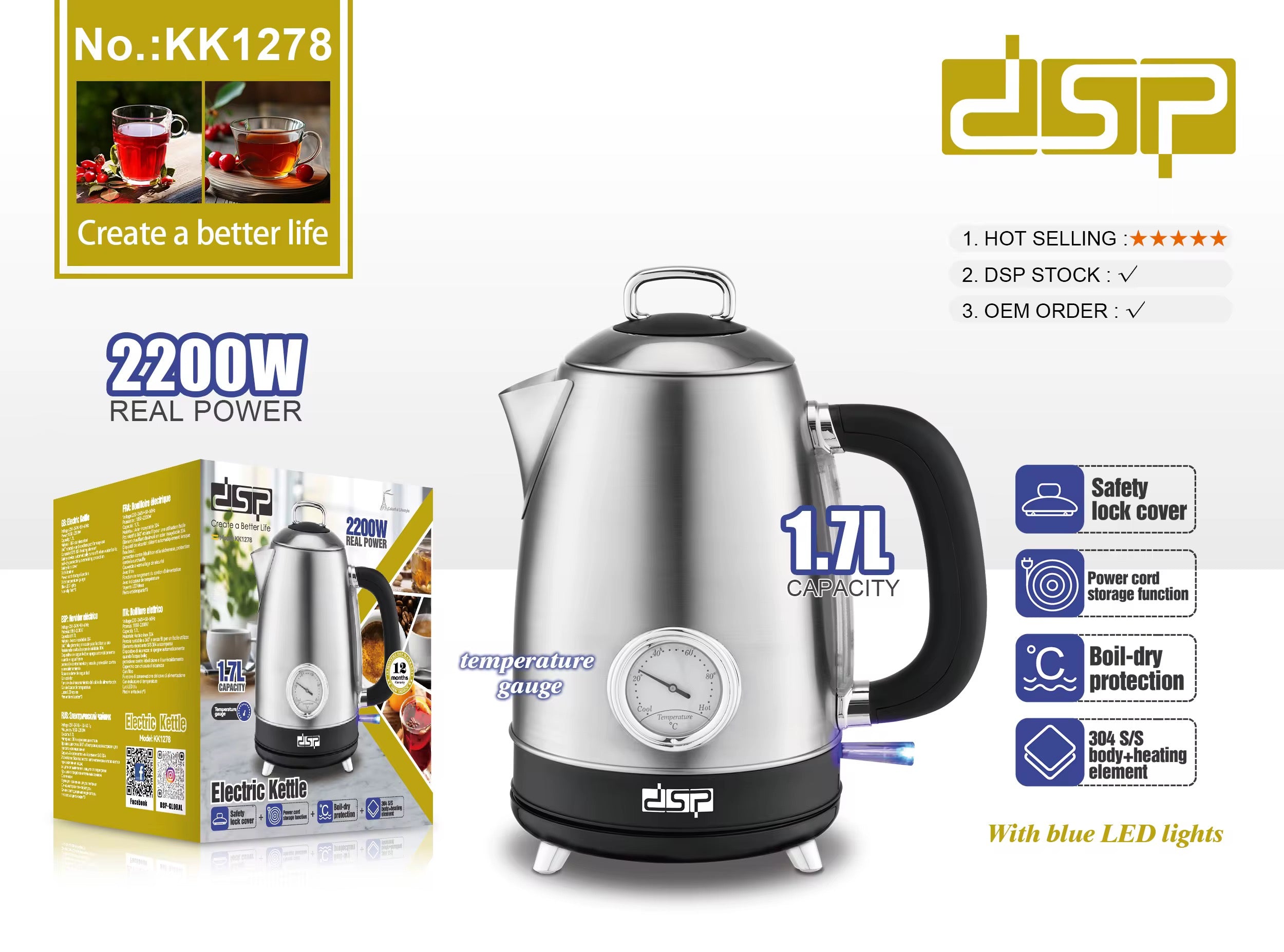 - Safety device with automatic shut-off when water boils; boil-dry protection; overheat protection