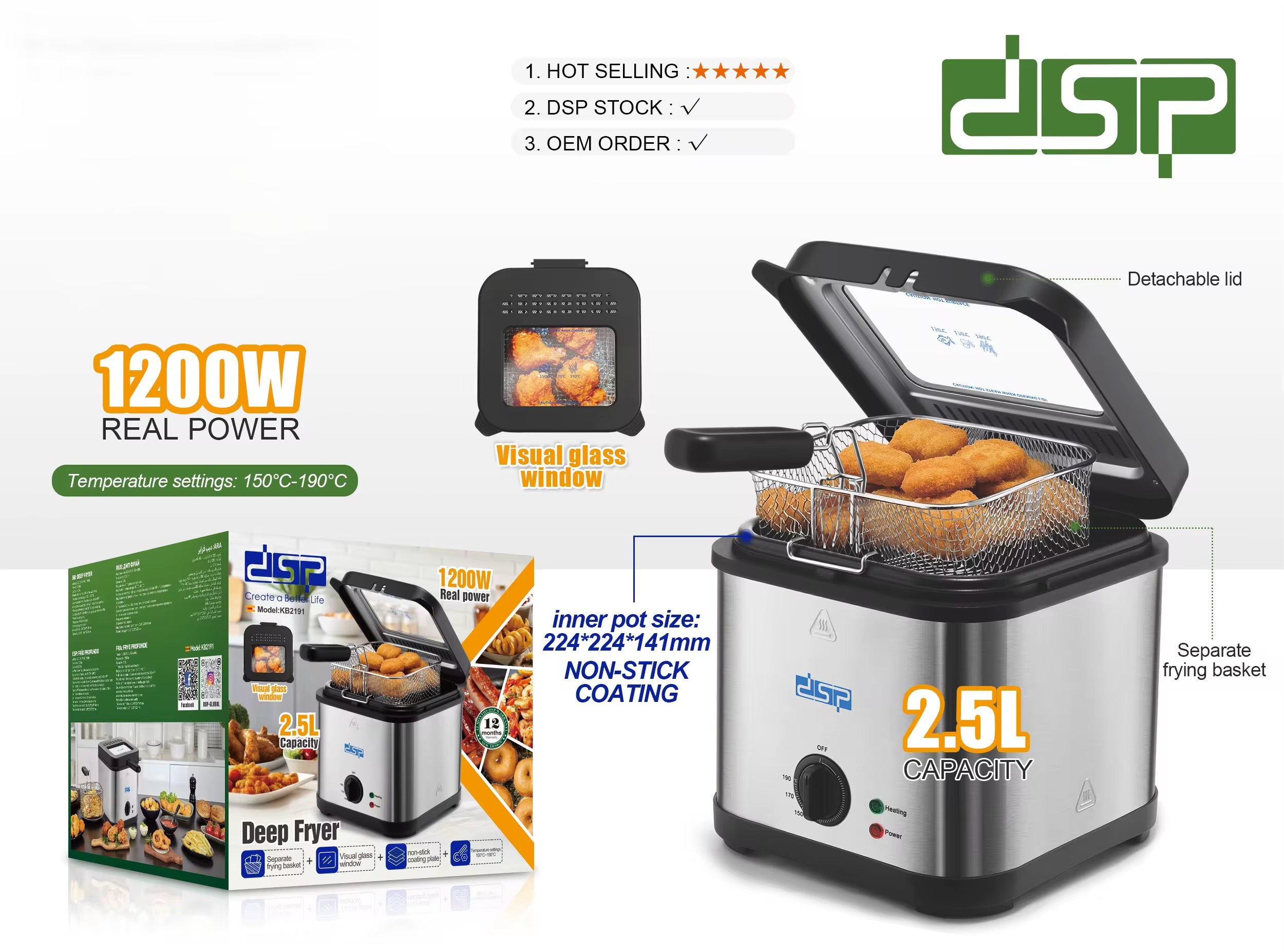 Equipped with a separate frying basket for easy cleaning