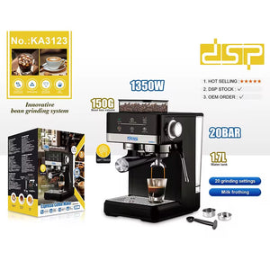A multi-functional touchscreen that includes grinding coffee for one or two cups, preparing hot or cold espresso, and making milk froth.