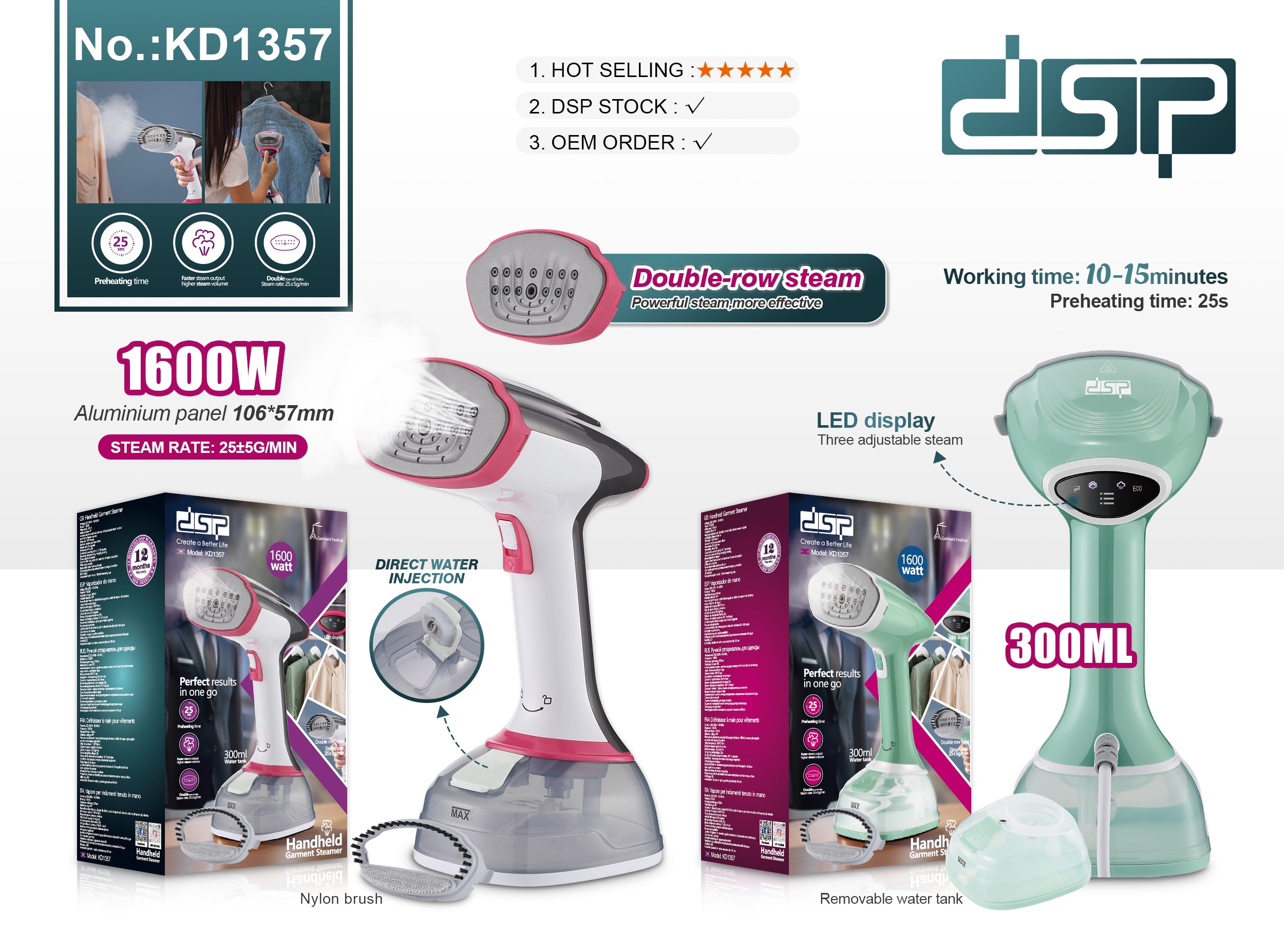 - Three adjustable steam levels