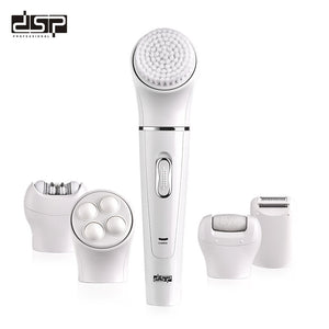 رأس إزالة الشعر + رأس ماكينة حلاقة + رأس فرشاة تنظيف + رأس تدليك + رأس مزيل مسامير القدم + محول + فرشاة تنظيف