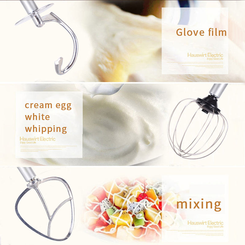- الملحقات: 1 خطاف خلط (ألمنيوم يموت يلقي)، 1 خطاف عجان (ألمنيوم يموت يلقي)، 1 مضرب بيض (SUS304)