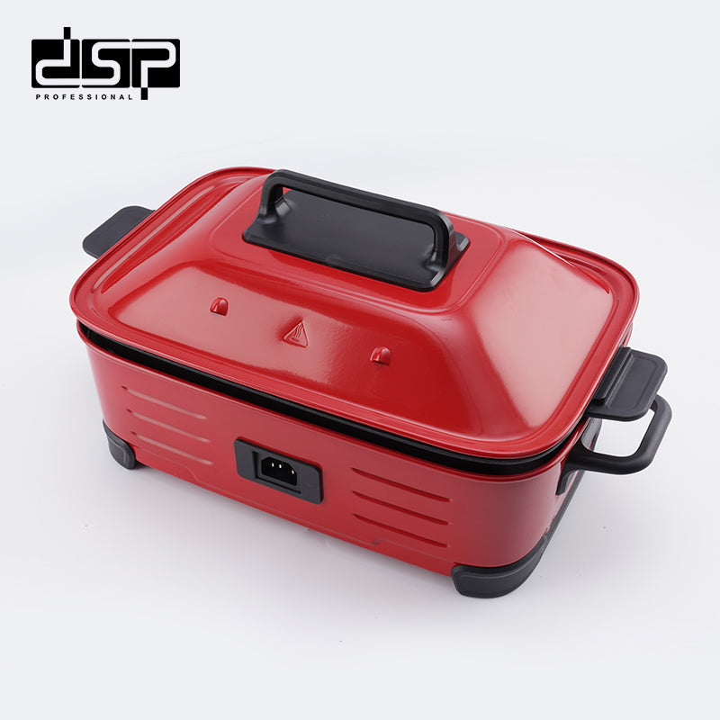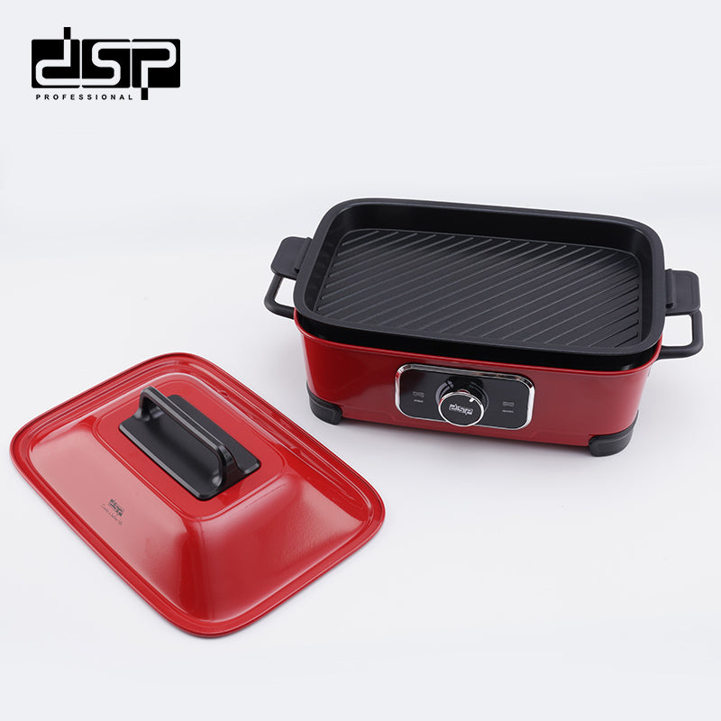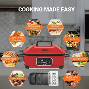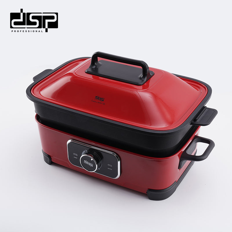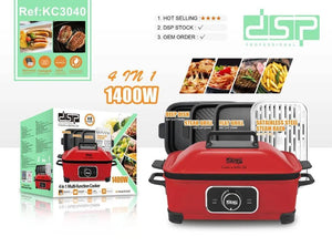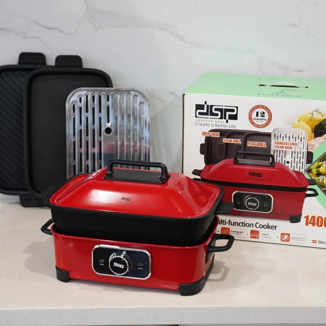 مطبخ متعدد الوظائف - الجهد الكهربائي: 220-240 فولت ~ 50/60 هرتز - الطاقة الإنتاجية: 1400 وات - مواد الهيكل: صاج مدلفن بارد - مواد الصاج: ألمنيوم يتم صبه بالقالب - نطاق درجات الحرارة: 60-230 ℃ - 4 إعدادات لدرجة الحرارة: الاحتفاظ بالحرارة / منخفضة / متوسطة / عالية - حجم الشواية المسطحة وشواية الستيك: 389*234*33 ملم - حجم الصحن العميق: 405*245*79 ملم - حجم حامل البخار: 313*207*5 ملم - هياكل أواني منفصلة: آمنة للاستخدام وسهلة التنظيف - الوظائف: القلي، الشوي، البخار، الغلي، والطهي في وعاء الشوربة - حماية من الحرارة الزائدة - الملحقات: صحن عميق، حامل بخار من الفولاذ المقاوم للصدأ، شواية مسطحة، شواية للستيك