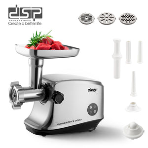 الملحقات: شفرة من الستانلس 420، ثلاث شفرات معدنية (7 مم، 5 مم، وشكل مروحة)، دافع طعام، ملحق الكباب، وملحق السجق (أنابيب كبيرة ومتوسطة ورفيعة مع حامل)