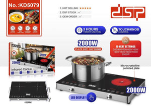 يحتوي على 10 مستويات حرارة: 200 – 400 – 600 – 800 – 1000 – 1200 – 1400 – 1600 – 1800 – 2000 واط
