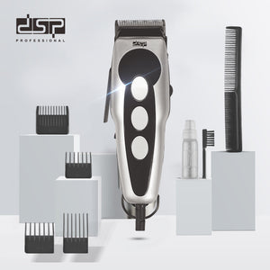 ماكينة حلاقة كهربائية احترافية تتميز بمحرك عالي الأداء وهادئ، وشفرات من التيتانيوم أو الفولاذ الخاص الحاد والمقاوم للصدأ، وهي مناسبة للحلاقة الدقيقة للوجه والجسم. تعمل بالكهرباء عبر سلك (10 واط، 220-240 فولت) ولها سرعة دوران تصل إلى 6000 دورة في الدقيقة، وتأتي مع ملحقات مثل فرشاة التنظيف وزيت التشحيم.