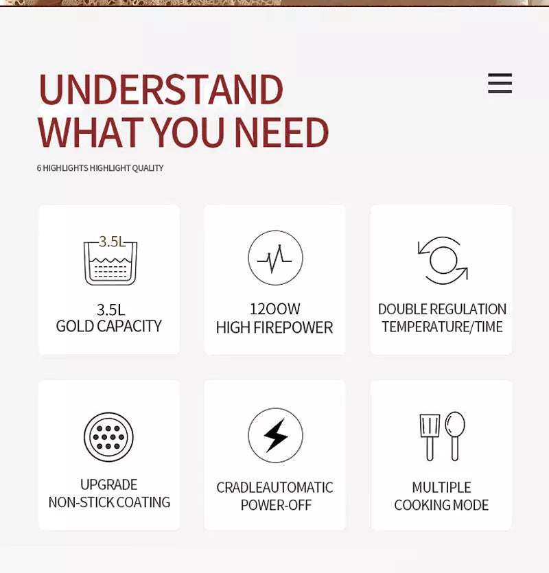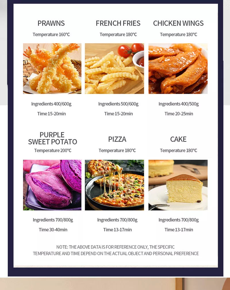 - Rapid air calculation system fry food faster and save more energy and environmental protection.