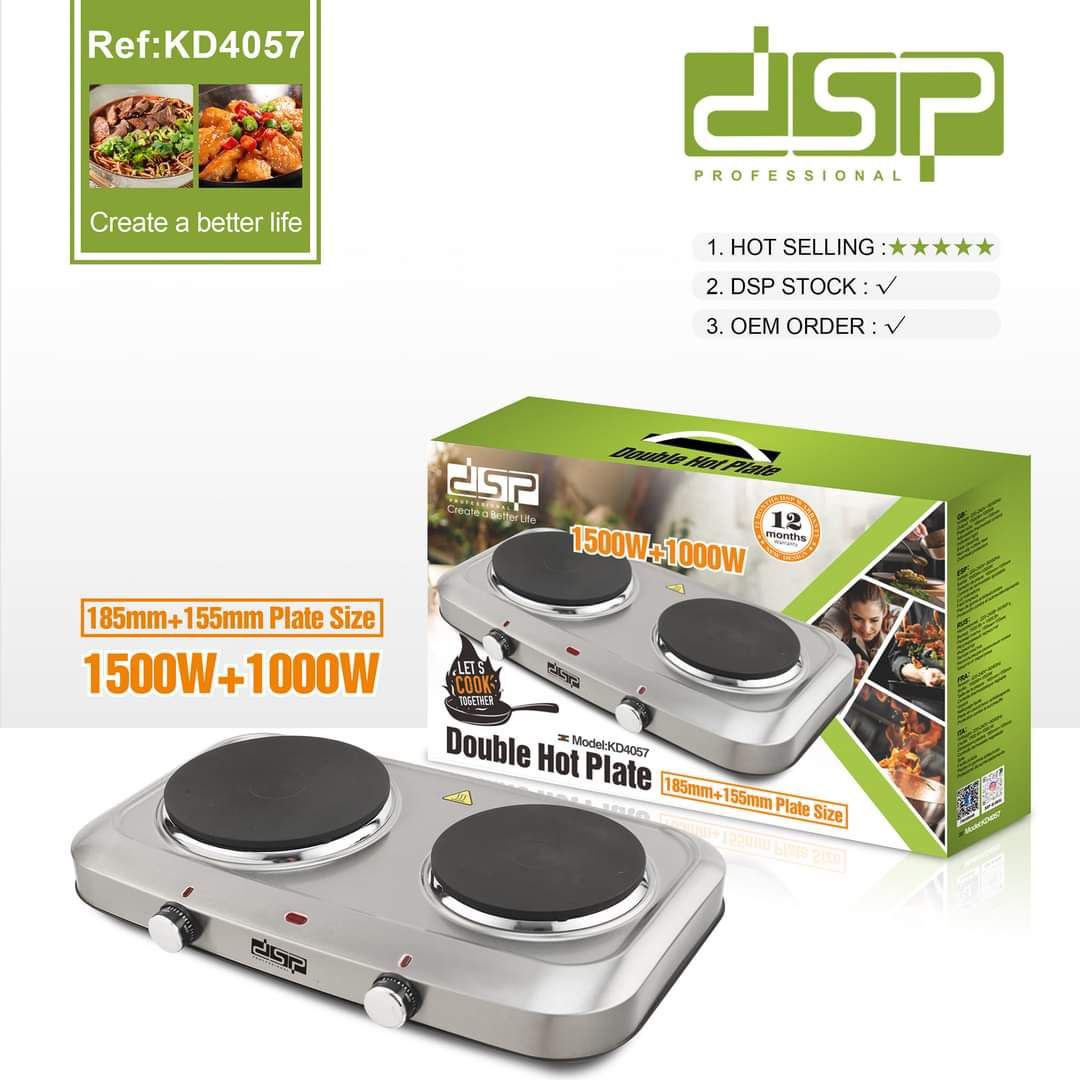 - Introducing the DSP Electric Portable Hot Plate, a versatile cooking solution for hotels, commercial spaces, and households. With a combined power of 1500W + 1000W, this electric hot plate delivers efficient and precise cooking performance.