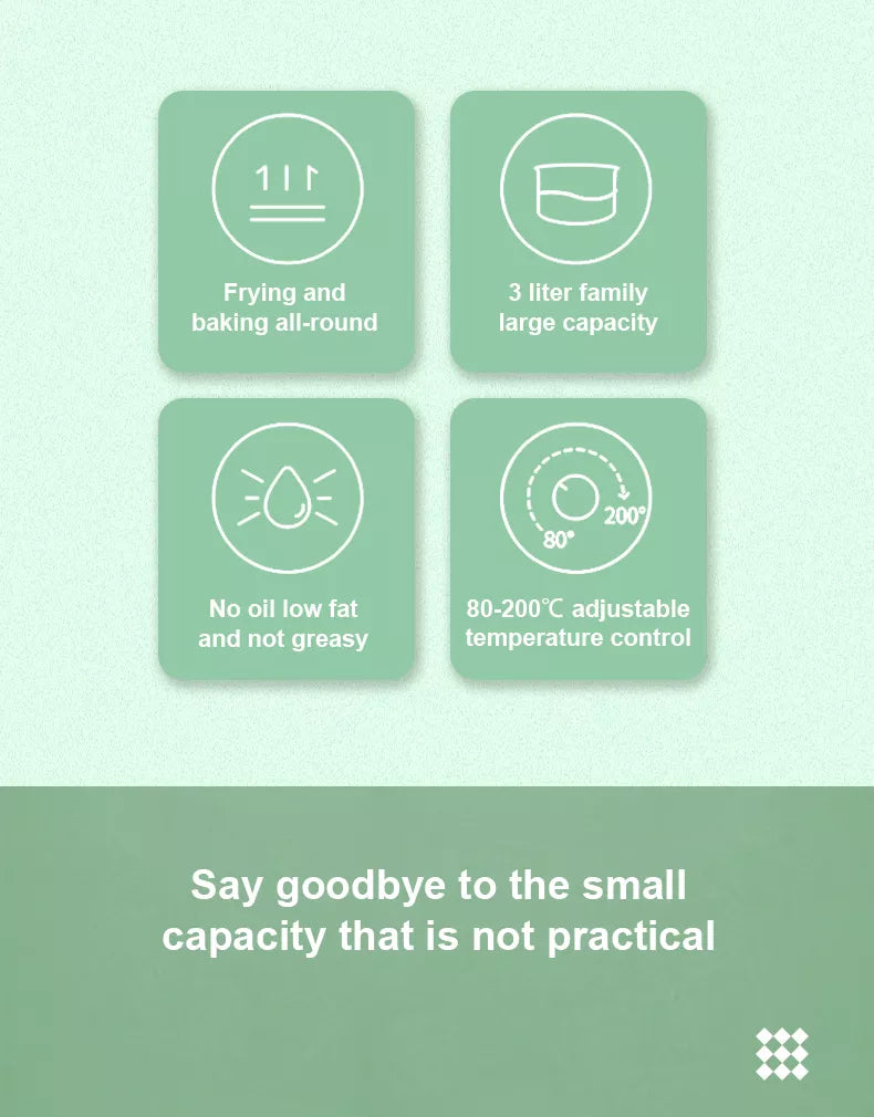 - Rapid air calculation system fry food faster and save more energy and environmental protection.