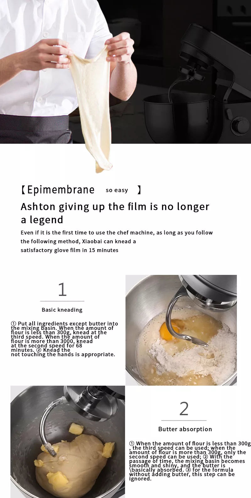 - 3 Moving heads: 1 head for strong dough, 1 head for beating, and 1 head for cream.